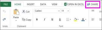 To share a workbook, click Share and type email addresses of people you want to share with or get a link you can email to your contacts.