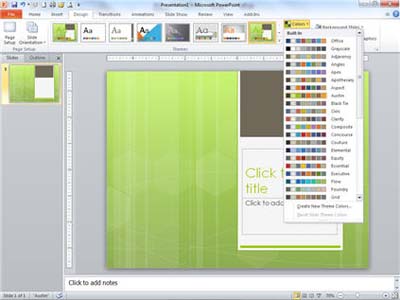 Julie Terberg, a graphic designer and PowerPoint MVP, also points out that using the themes in PowerPoint can make your color combination choices easier (Figure 7). Theme colors have been chosen to look good together (although, still use caution) and to work well in both light and dark presentation environments.