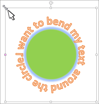 Wrap around a circle    To create text that completely circles your shape, choose Circle under Follow Path, and then drag any of the sizing handles until your WordArt is the size and shape you want.