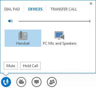 When you’re in a call, point to the phone/mic icon to access the controls, and then click the tab you want: