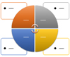 Use to show the placement of concepts along two axes. Emphasizes the individual components rather than the whole. The first four lines of Level 1 text appear in the quadrants. Unused text does not appear, but remains available if you switch layouts. |