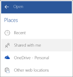 2. Scroll down and select the Shared with Me tab, or select Open > Shared with Me.