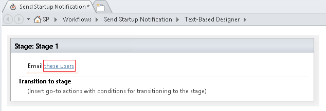 The To address of an email can either be a specific, static address (for example, NORTHWINDTRADERS\junmin or junmin@northwindtraders.com), or a workflow lookup to variable information. For more info about using workflow lookups to dynamically address emails sent from the workflow instead of using static addresses, see Dynamically select users or groups to receive the message.
