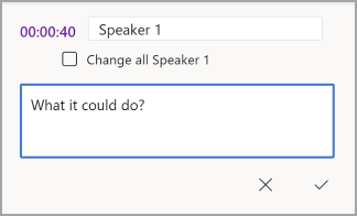 3. Edit the content or change the label. To change all instances of a label, select Change all Speaker [x].Relabel a transcript name or edit the section.