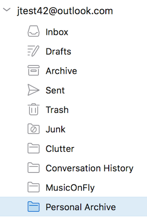 Note: In order for your archive mailbox to work with Outlook for Mac both your archive and primary mailboxes must be either on an Exchange Server (on-premises) or on Exchange Online in Microsoft 365 (cloud). If your primary mailbox is in on Exchange Server, for example, and your archive account is in Exchange Online in Microsoft 365, you won't be able to use your online archive. Talk to your IT or Microsoft 365 admin about co-locating them.