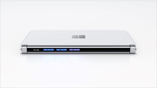 Even when your Surface Duo 2 is closed, you can stay on top of things. The Glance Bar shows incoming calls or messages—including ones you might have missed. When you plug in Surface Duo, you'll see the current battery level.