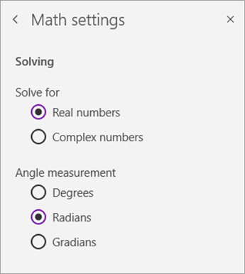 Note: If you choose to solve for complex numbers, the only possible angle measurement option will be radians.